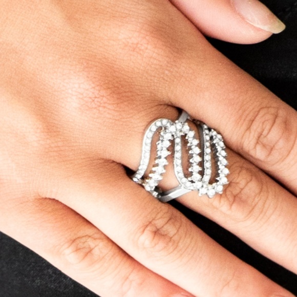 View Paparazzi Make Waves Silver Ring PNG. Features a stretchy band for a flexible fit. Sold as one individual ring.
